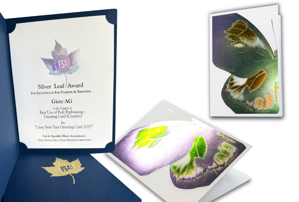 Silver for the Gietz New Year’s Card 2025 in the Greeting Card (Creative) category – finished with utmost precision using the Gietz FSA 870 Compact.