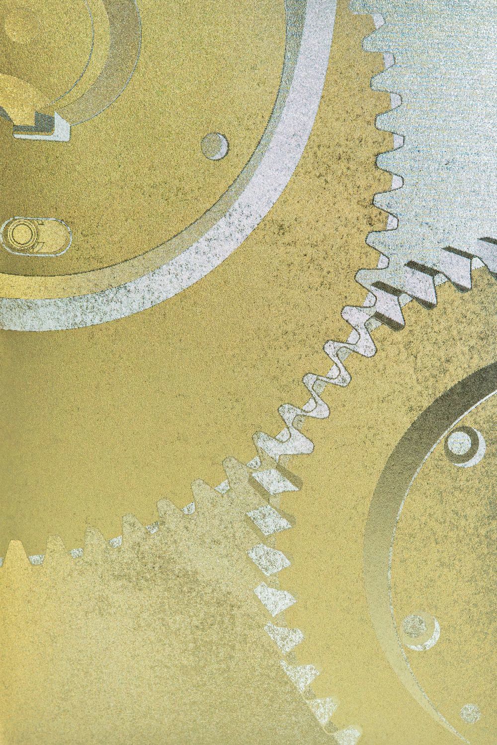 The design and production of the New Year’s card were carried out by a partner of Gietz. The areas of the image were filled with lines at different angles (0°, 45° left, 45° right, 90°) to create a microembossing effect. Only one foil color was used, which appears lighter or darker depending on the direction of the lines.